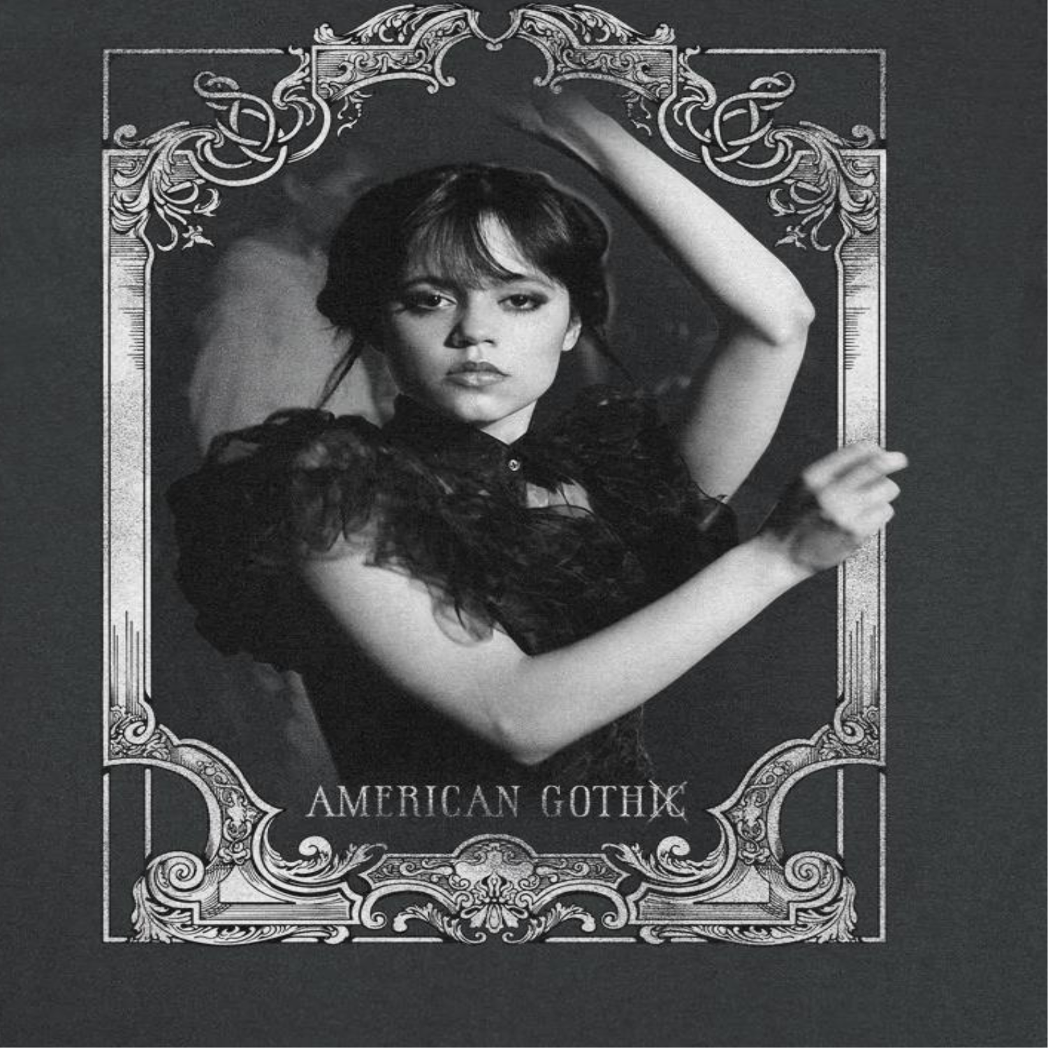 Check out this cool Wednesday American Gothic Black T-Shirt from the enormously popular Netflix Wednesday series. Each shirt is a black 100% cotton, standard-fit, heavyweight tee. Officially licensed.